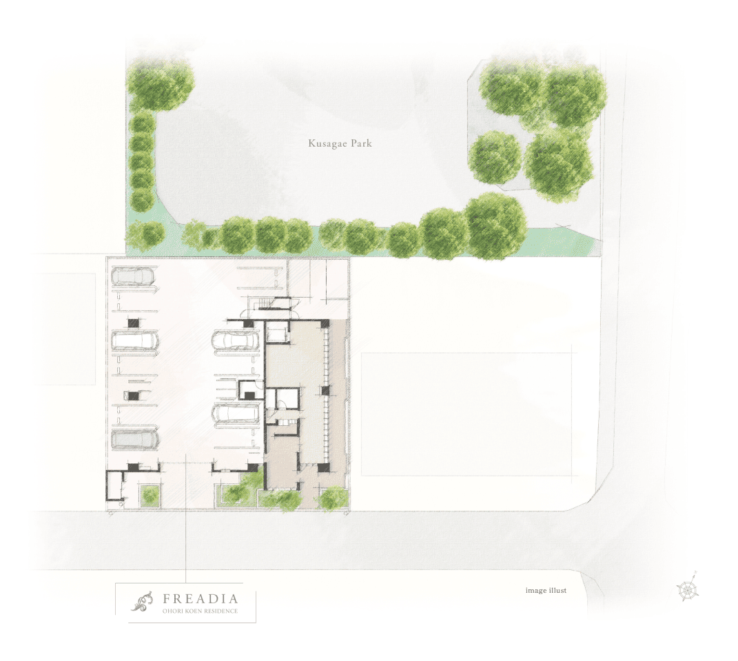 ※掲載のCGは図面をもとに描いた完成予想図につきイメージです。植栽は竣工から初期の生育期間を経た状態のものを想定して描いております。
